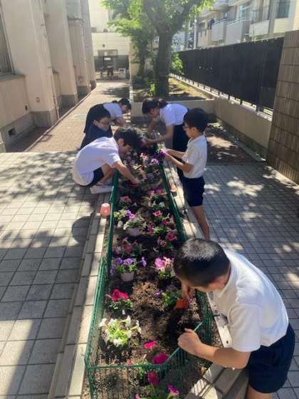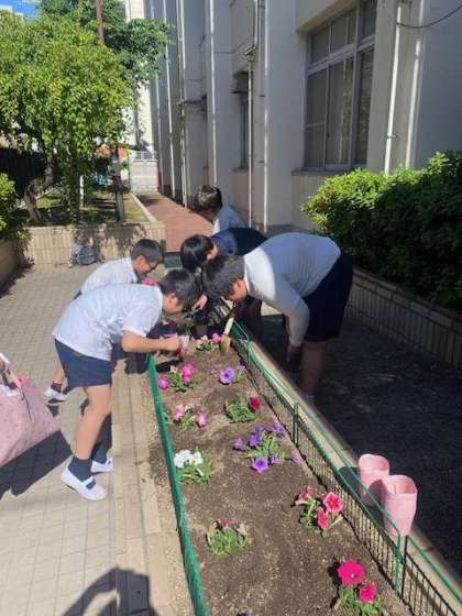 6時間目に委員会活動がありました。環境委員会で正門の花壇に花を植えました。来校される方に喜んでもらえるように、しっかり育てていきましょう。