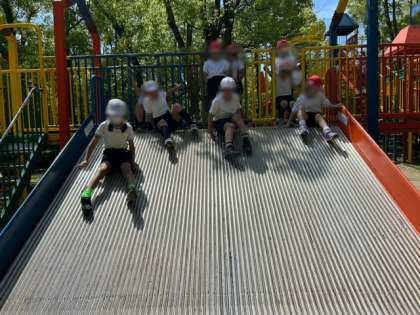 ファミリーで大きな芝生で遊んだ後、いろいろな滑り台があるところでも遊びました!