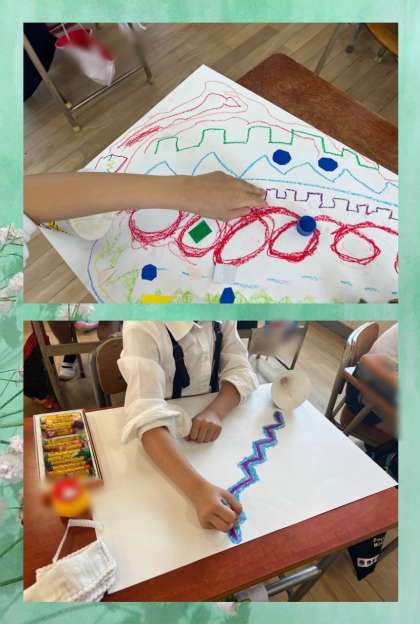 色を重ねてみたり、太さを変えてみたりして、それぞれが工夫している姿がみられました。