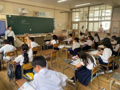 4年生、5年生とも社会科の学習をしていました。4年生では自分たちの暮らしとそれにともなって出てくるゴミについて学んでいました。5年生では暖かい土地のくらし(沖縄県)について学んでいました。