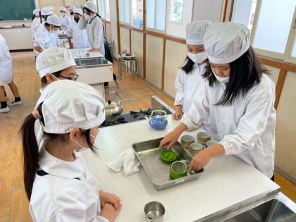 5年生は家庭科の学習で初めての調理実習(お茶作り)をしました。子どもたちは、「お湯を沸かす」「お茶を入れる」「洗い物をすること」の楽しさと共に大変さも実感することができた様子でした。