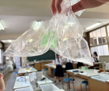 ヒトは空気を吸ったり吐いたりするときに何を取り入れ何を出しているのかを調べました。酸素が減り、二酸化炭素が増えていることがわかりましたね。気体検知管や石灰水の使い方もバッチリ!!!