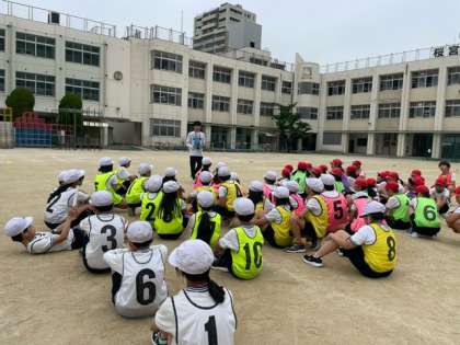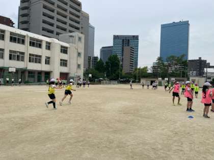 5年生はリレー大会をしました。これまでグループで練習してきたバトンの貰い方や渡し方、しっかり意識して取り組むことができました。