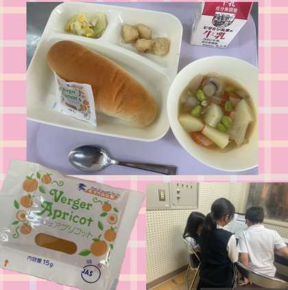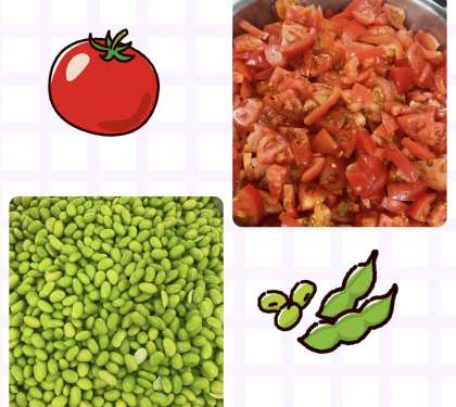 今日の給食では、「フレッシュトマトのスープ煮」に生のトマトを使っています。また、枝豆も入り、彩りの良いスープです。