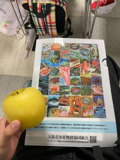 せり場に立たせていただき、お土産まで頂きました!りんごの名前は"信濃ゴールド"です。美味しく頂きたいと思います。