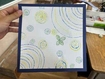 図画工作科の時間にはアボリジニアートに挑戦しています。細かい作業ですが、集中して頑張りました。綺麗な集合体です。