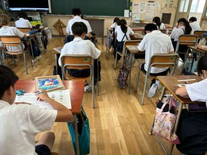 テストが続きますが、みんなよく頑張っています。今年から始まった外国語の筆記テストの様子です。