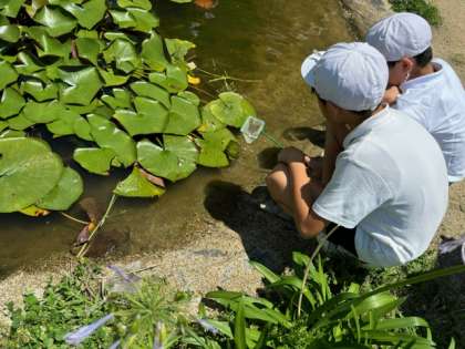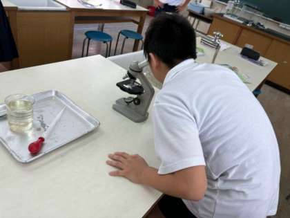 桜池にいるメダカが何を食べているのかを調べました。久しぶりに顕微鏡を使っての観察でした!