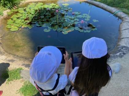 見つけた夏の生き物や植物の写真を、タブレットを使って撮影ました。