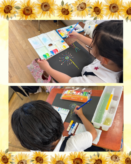細かい点や線を組み合わせると、綺麗な花火が出来上がりました。