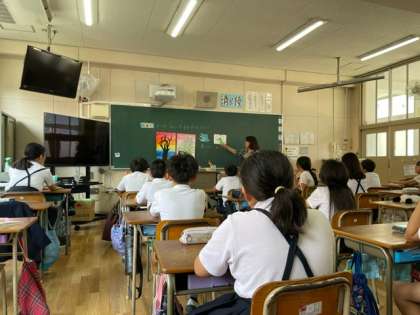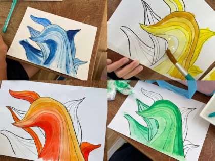 図画工作科の学習では、グラデーションアートにチャレンジしています。好きな色を2色決め、上手にグラデーションを作ることができました!!