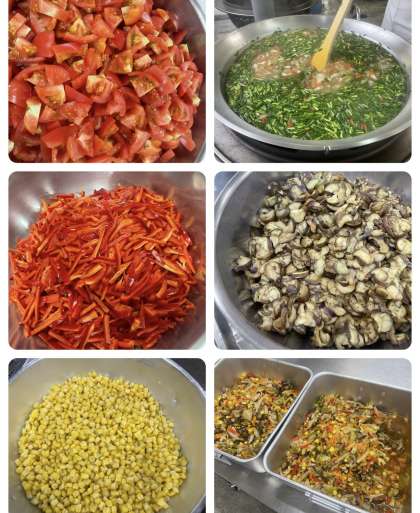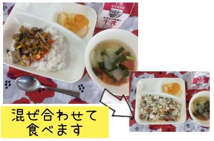 夏野菜のナス、ピーマン、赤ピーマン、とうがんなどを使っていて、味も見た目も元気の出る彩り味わいの給食でした。