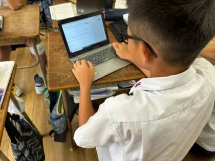 タブレット端末を使い、オンライン上で意見交換会を行いました。相手の顔がみえないぶん、文章を打ち込むうえで様々な考慮が必要ですね!いい経験になりました。
