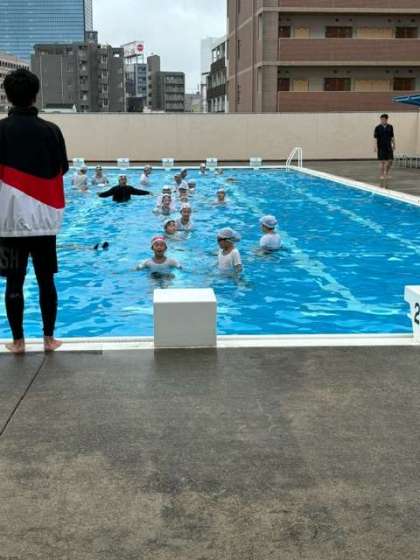 着衣泳を行いました。水に濡れると服はずっしり重たくなりましたね。夏休みの川遊びなどでの緊急時は是非学んだことを生かしてください。