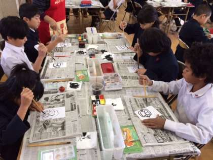 11月27日(金)3.4時間目に4年生対象に、「絵手紙教室」がありました。生涯学習ルームでも教えておられる方に講師として教わりました。内容は来年の干支の「サル」と「赤いもの」の2点です。さて、どんなふうに仕上がるでしょうか。