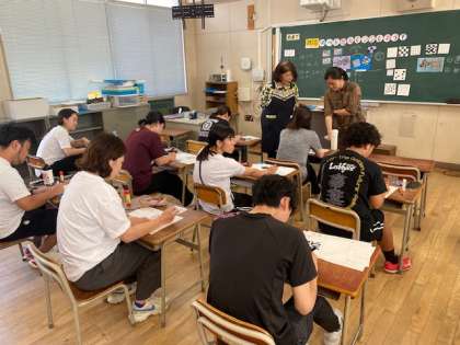 夏休みを利用して様々な研修会を実施しています。そして、今日は図画工作科の研修会を行いました。指導する時のポイントを教えてもらい、実際に自分たちでも作成してみました。今後の学習で活用できる技能をたくさん学ぶことができました。