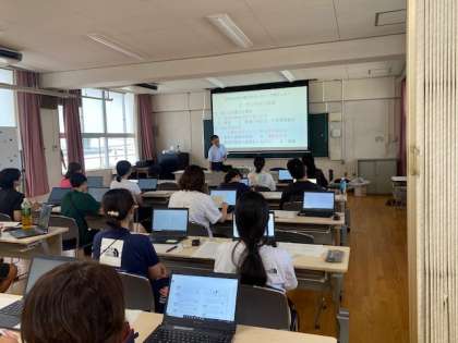 大阪市総合教育センター、スクールアドバイザーの田窪先生に来ていただき、国語科の指導ポイント等を教えていただきました。本校の全国学力・学習状況調査の結果や問題文をもとに、子どもたちが楽しく学びながら学力を高められるためには各学年がどのような取り組みをしていくべきなのかなどを考えていくことができました。
