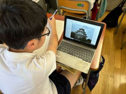 図画工作科では大阪城を描いています。立体的に表現するのが難しい!でも、頑張るよ!!!