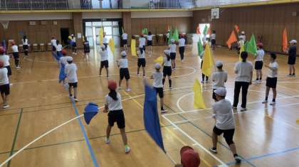 今年はフラッグを使った団体演技にも挑戦します!たくさんの曲がありますが、楽しみにながら頑張っています。応援よろしくお願いします!!!