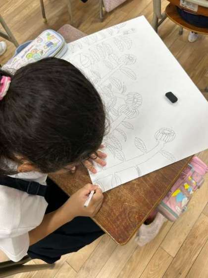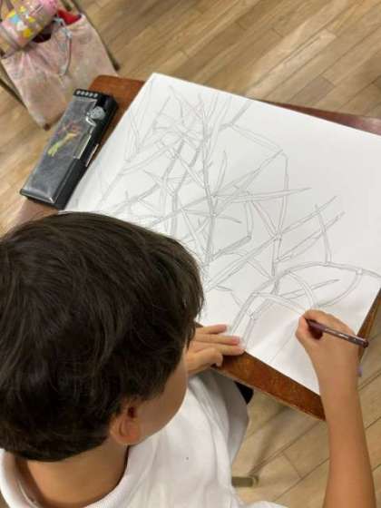 葉っぱの線や花びらの特徴など細かいところまでしっかり見て描くことができています。
