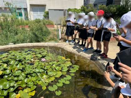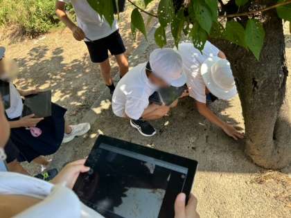 理科の授業で昆虫を探しにタブレットを待って学習園へ行きました。