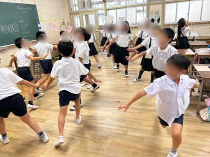 休み時間に子どもたちが運動会のダンスを楽しそうに踊っている姿が見られます。
