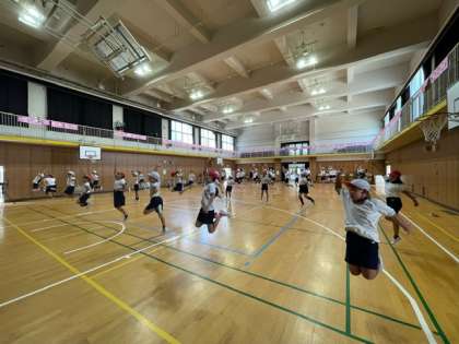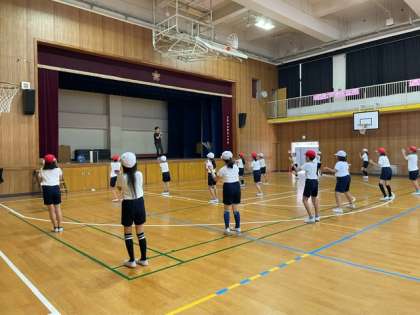 運動会の練習をしています。9月に入ってもまだまだ暑いですが、しんどい姿勢にも負けず、とても集中して頑張っています。