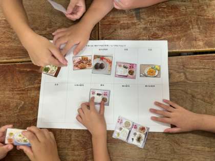 給食の献立や食材から、年中行事との関わりについてゲーム形式で考え、行事食について学びました。