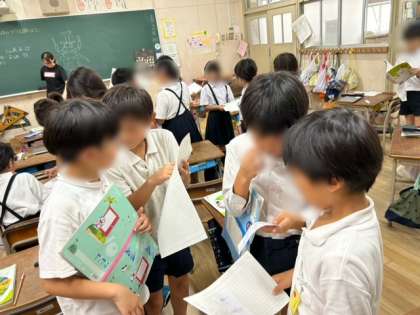 いくつに分かれるのか予想して、それを友だちに伝え合っています。