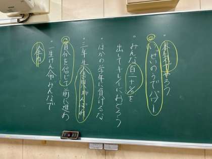 国語の学習で「グループの合言葉を決めよう」という単元を学習しました。運動会に向けての合言葉を考えました。