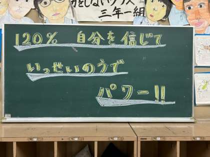 運動会の合言葉を決めました。1組2組それぞれのクラスの合言葉があって、子どもたちの運動会への思いがたくさん込められてます。