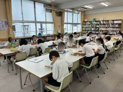 子どもたちは静かに本を読んでいます。いろいろな本に興味を持って真剣に読書を楽しんでいます。