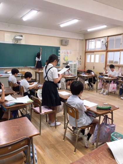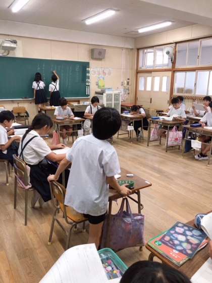 国語科「話し合って決めてよう」では、司会・提案者・書記・記録・参加者の役割に分かれて話し合いを行いました。話し合う議題は、「遠足で3年生と仲よく過ごすために」にとし3つ出た提案に対して、参加者が質問をし、最後に1つの意見にまとめることができました。