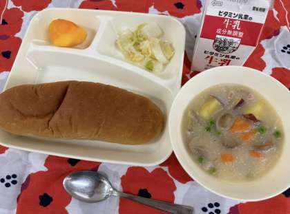 今日は秋が旬の食べ物の、さつまいもや柿が出ました。