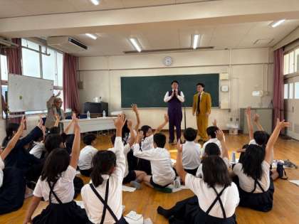 子どもたちは緊張する中、たくさん練習した漫才を一生懸命披露していました。貴重な体験をし、子どもたちはとても楽しそうでした。