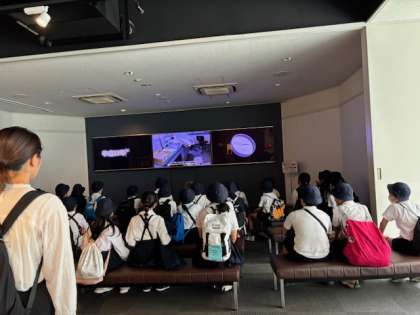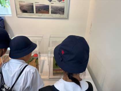 活断層のしくみなどを体験しながら学んでいます。また映像などを通して地震によって引き起こされる津波についても学びました。