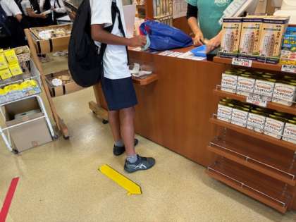 福良港に着きました!まずはお買い物からです。計画的にお金を使う機会もなかなかないので、良い経験になったと思います。保護者の皆様、お土産をお楽しみに!!