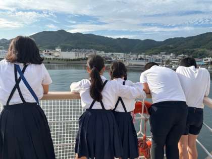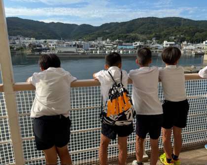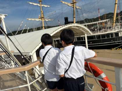 うずしおクルーズもう間も無くで出港です。みんなワクワクしながら待っています。社会科などで学習したうずしおは果たして見えるのでしょうか!!!