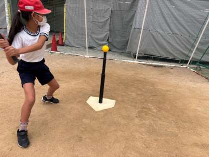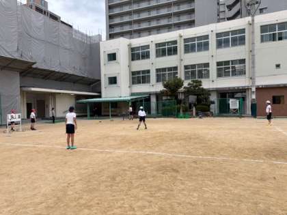外での体育はティーボールです。ボールをよく見て打っています!守備の時は失点がどうしたら少なくなるのかを考えてポジションについています。ナイスバッティング!ナイスプレー!