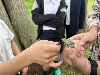 かえるやコオロギを捕まえるなど、普段では味わえない自然を感じています。