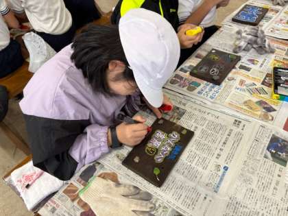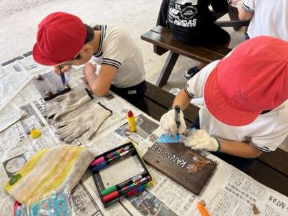 自然体験学習の名物といえば、焼き板作りですよね。子ども達もそれぞれの思いを絵にして焼き板に表現していきます。みんなで焼き板を作ったという思い出は、大人になってもずっと残っていくので、大切に作って欲しいと思います。