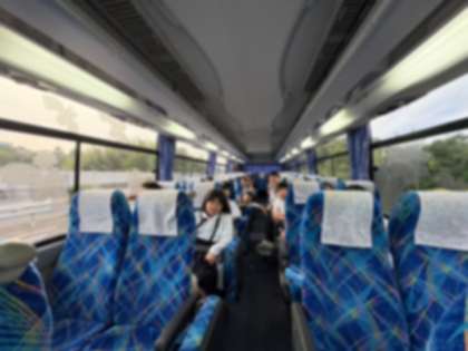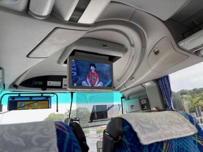 「赤松パーキングエリア」に到着しました。これで最後の休憩です。いよいよ自然体験学習も終わりに近づいてきました。子どもたちは映画を観て友達とその内容について語り合う様子が見られました。
