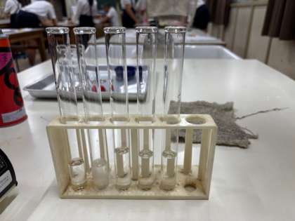 5つの水溶液を臭ったり熱したりして区別しています。アンモニア水は物凄い臭いがしましたね。それぞれの液体がどのような性質を持っているのか、また復習しましょう!