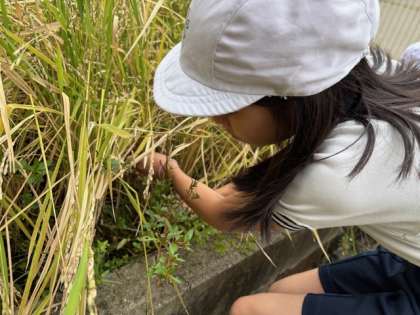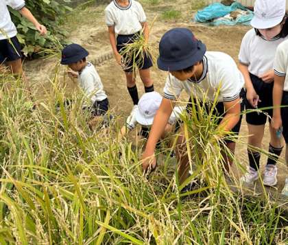 総合的な学習の時間に、5年生で育てていたお米の稲を刈りました。子どもたちは、お米を食べるまでに沢山の作業があり、とても大変であることを実感しながら「残さず食べないとな。」と話していました。大切なことに気づくことができましたね。