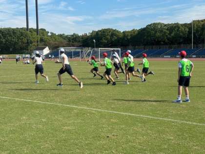 午前中はサッカーとドッジボールをしました。みんなとても楽しそうに笑顔でプレーしています。芝生で元気いっぱい体を動かすのは気持ち良いですね。