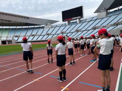 午後のプログラムも終わりました。大きなスタジアムのトラックを走り、子どもたちにとっては忘れられない思い出となりました。力を精一杯出し切ることはできましたか?これから学校へ帰ります。よく頑張りましたね!