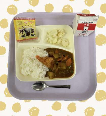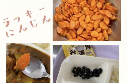 カレーには調理員さんが作ってくれたラッキーにんじん(型抜き人参)入っていました。秋なので、木の葉バージョンです。