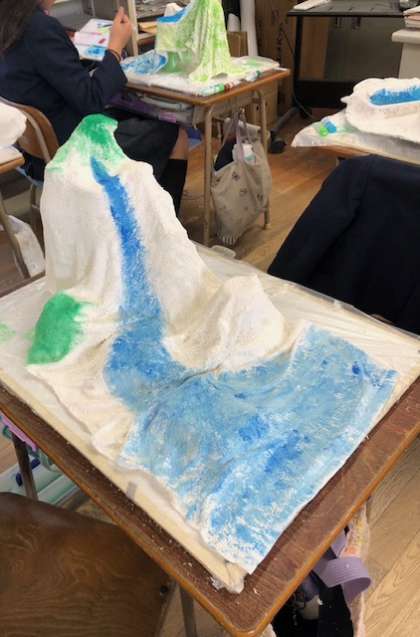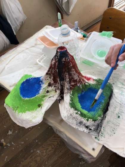 緑が生い茂った島や火山がある島など、色をつけながら島への想像を膨らませ色もこだわりながらつけていました。