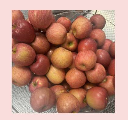 今日は小学校と中学校合わせて約600名の給食を作ったので、約150個のりんごを4等分に切って提供しました。