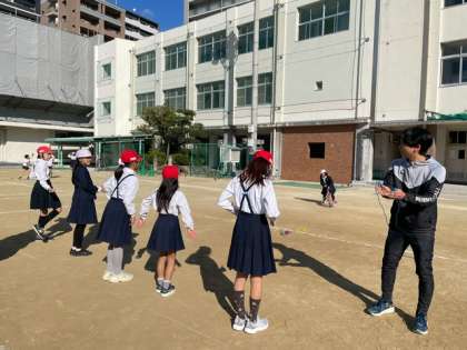 今週は、なわとび週間です。なわとびギネスに向けて運動場では、なわとびの練習をする児童がたくさんいます。今日は運動委員会が披露してくれた技にチャレンジする様子が見られました。学年を超えて楽しそうにチャレンジする姿、とても素敵でした。